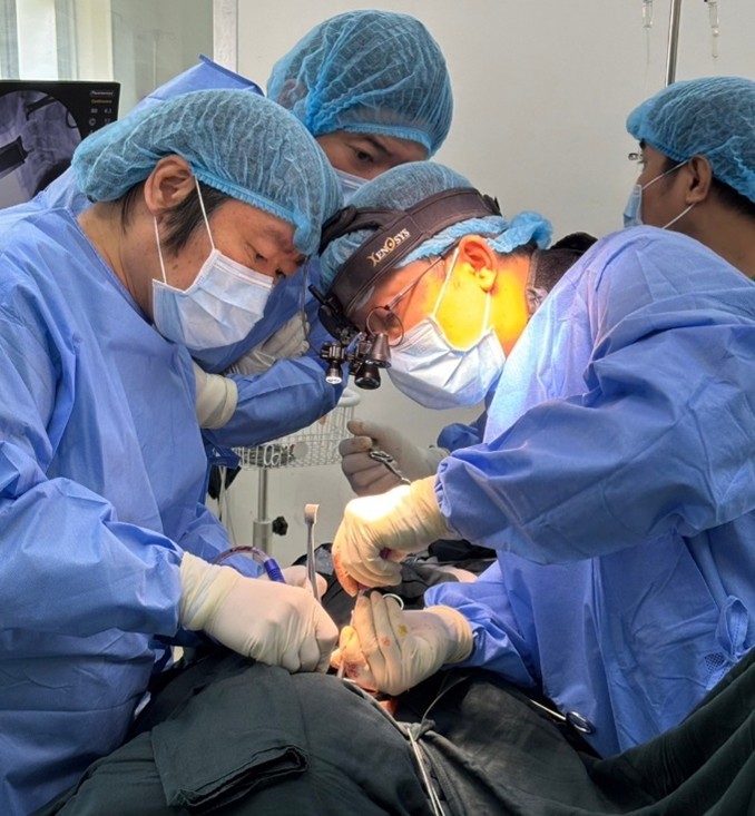 2025年3月6日-7日にカンボジア・プノンペンにて頚椎領域の手術支援ならびに教育研修講演(セミナー)、手術手技ワークショップを行って参りましたのでご報告致します。 カンボジアとの交流事業は国際頚椎学会日本機構アジアパシフィック交流委員会が継続して行ってきた事業の一つです。COVID-19流行の影響で直接の現地に赴いての交流・支援が2019年以降中断しておりましたが、昨年5年ぶりに現地訪問が再開され、本年も無事に継続することができました。本年は湯川泰紹先生 (名古屋共立病院脊椎脊髄外科センター長)、宮本裕史先生 (神戸労災病院整形外科部長)、青山剛先生 (手稲渓仁会病院整形外科副部長)、北村和也 (防衛医科大学校整形外科学講座講師)の4名で訪問し (図1)、手術支援、セミナー開催、手術手技ワークショップの3つを計画、遂行して参りました。